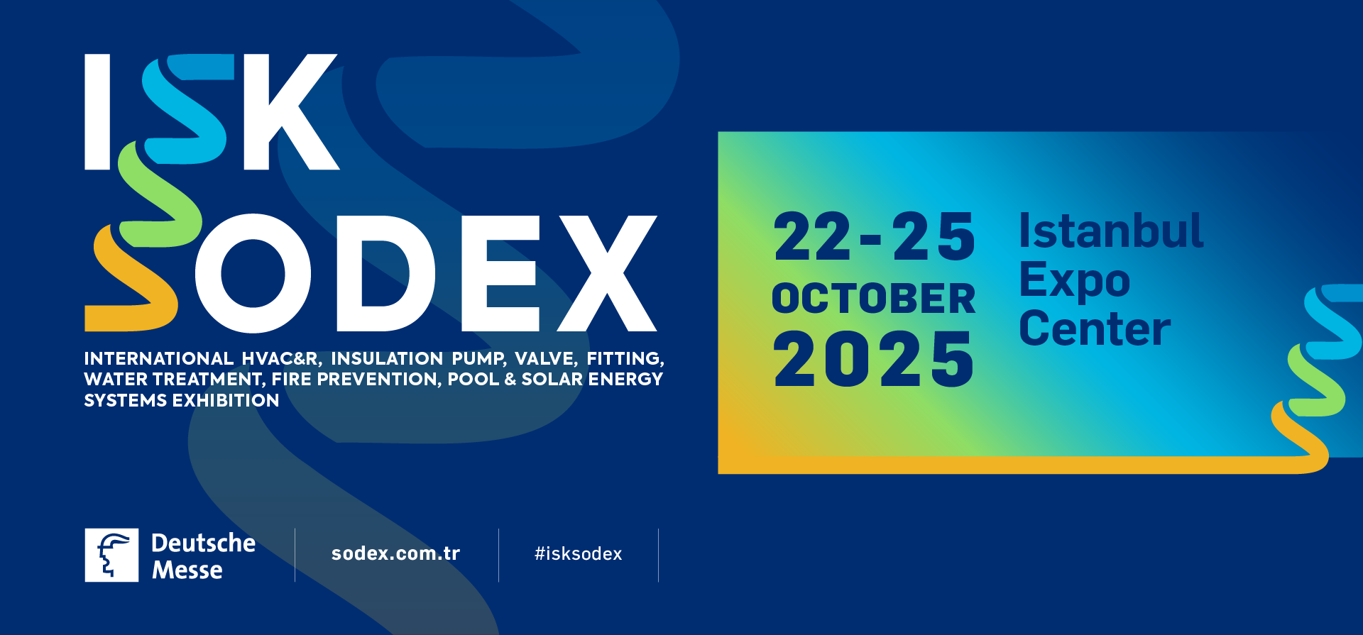 Deutsche Messe tarafından, Hannover Messe Sodeks Fuarcılık ile Isıtma Soğutma Klima Araştırma ve Eğitim Vakfı (ISKAV), DOSİDER, İSKİD, İZODER ve TTMD’nin eş organizatörlüğünde düzenlenecek Avrasya’nın en büyük iklimlendirme fuarı ISK – SODEX Uluslararası HVAC&R, Yalıtım, Pompa, Vana, Tesisat, Su arıtma, Yangın, Havuz ve Güneş Enerjisi Sistemleri Fuarı, yenilenen marka kimliği, ürün grupları ve etkinlikleri ile 22-25 Ekim 2025 tarihleri arasında İstanbul Fuar Merkezi’nde küresel iklimlendirme pazarının vitrinini yeniden dizayn edecek.